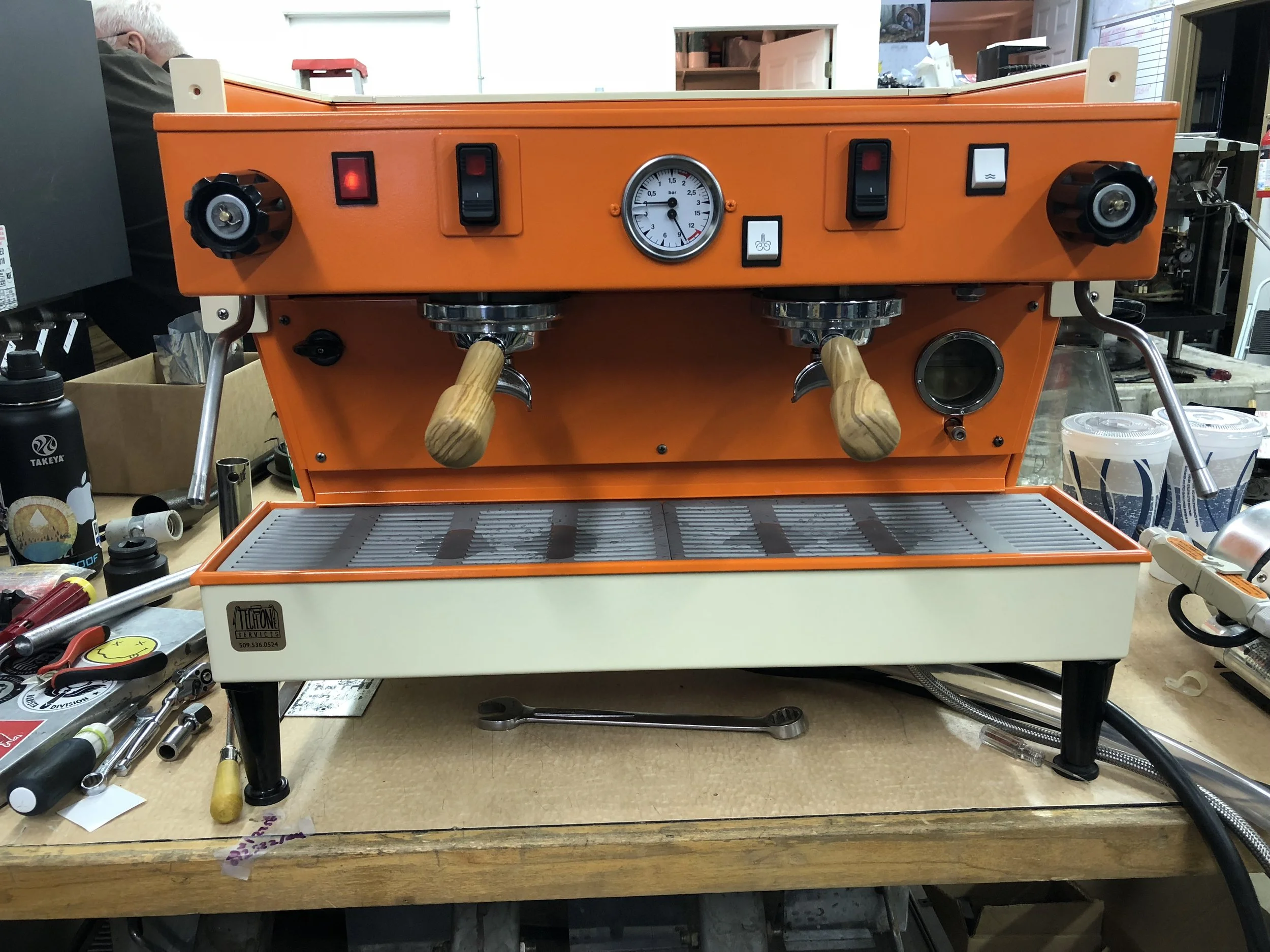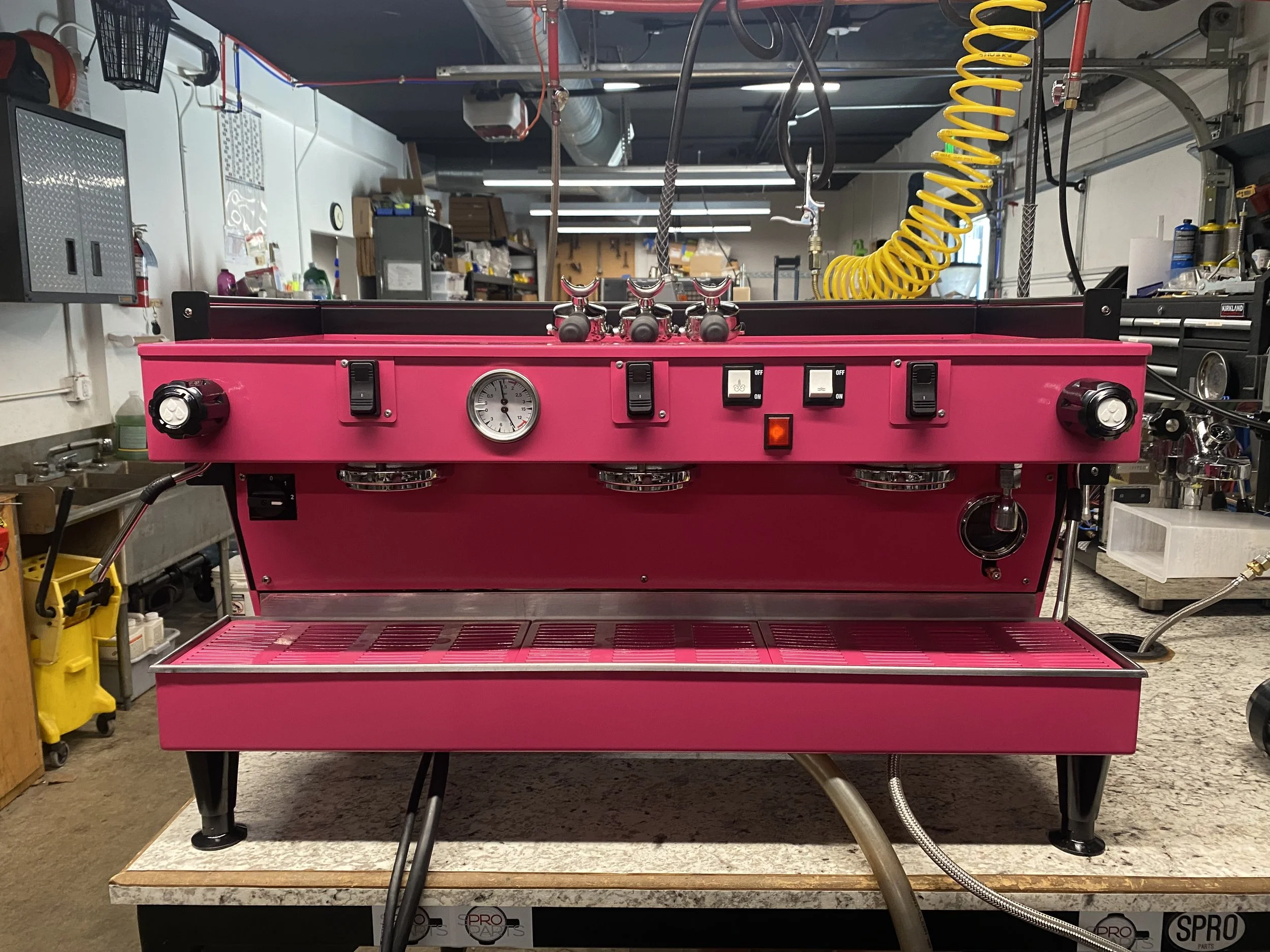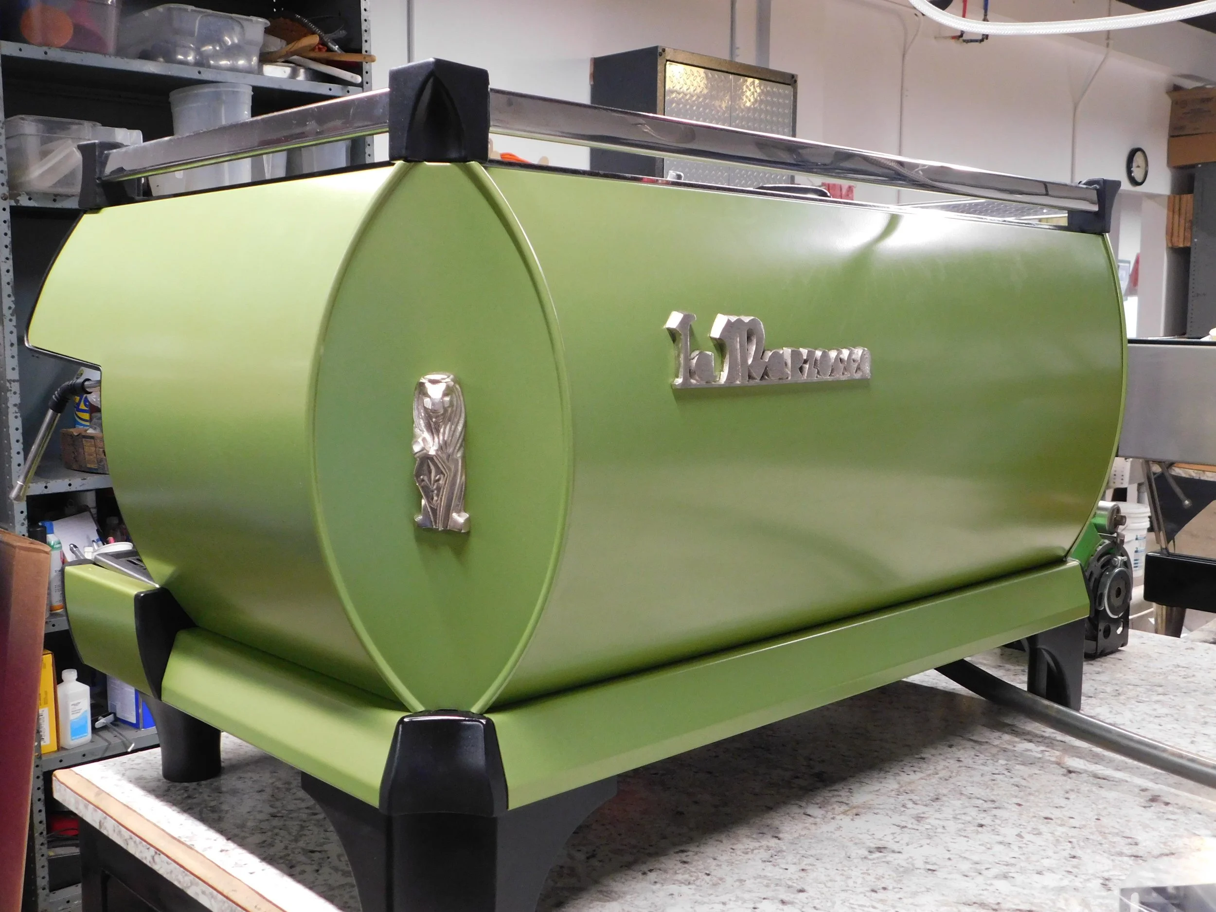 we SPECIALIZE IN work on vintage espresso machines and CAN CREATE custom powder coating PROJECTS to make your machine match your shops colors or just make it feel more like yours. feel free to contact us about projects like this.