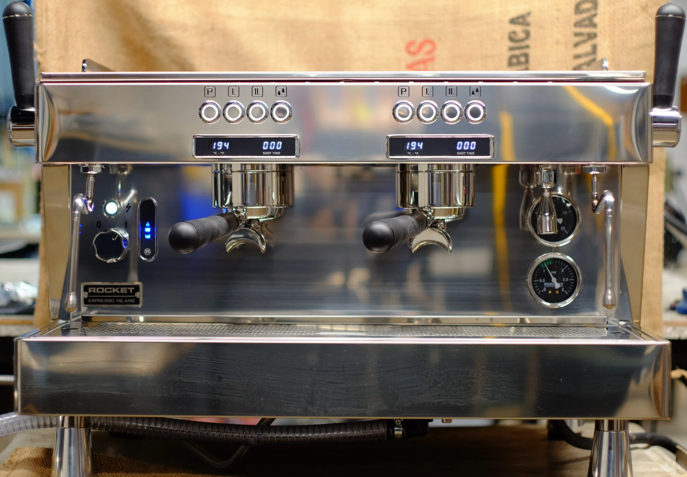 La Marzocco, Rancilio, Rocket and rotating stock of refurbished machines.
